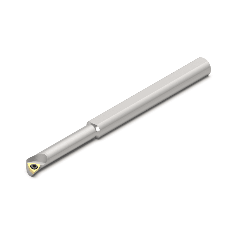 This carbide boring bar with inch dimensions has a shank diameter of 0.313” (7.94 mm) and a functional length of 3.937” (100.00 mm). It has a cooling channel. The tool cutting edge angle is 93.0° and the maximum boring depth at the minimum bore diameter of 0.307” (7.80 mm) is 1.417” (36.00 mm).