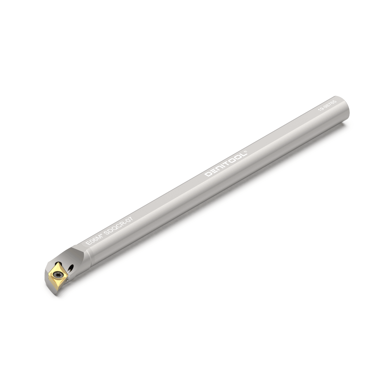 This carbide boring bar with inch dimensions has a shank diameter of 0.375” (9.53 mm) and a functional length of 5.906” (150.00 mm). It has a cooling channel. The tool cutting edge angle is 107.5° and the maximum boring depth at the minimum bore diameter of 0.551” (14.00 mm) is 2.250” (57.15 mm).